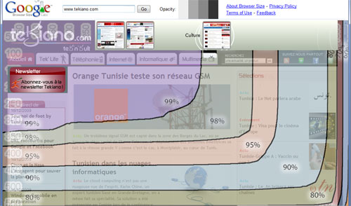 Pour tester le Google Browser Size, vous pouvez vous rendre sur cette adresse : http://browsersize.googlelabs.com/.