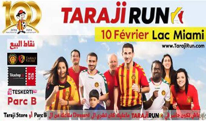 Dans le cadre des festivités du centenaire de l’Espérance Sportive de Tunis, qui ont démarré le 15 janvier dernier et qui se poursuivront jusqu’au 14 janvier 2020, le Comité d’organisation vous invite à participer le dimanche 10 février 2019 à la course Taraji Run.