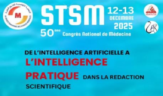 Le Congrès National de Médecine consacre sa 50ème édition à l’impact de l’IA sur sur la recherche et la rédaction scientifiques. Cette édition anniversaire se déroulera les 12 et 13 décembre 2025 aux Berges du Lac, à Tunis.