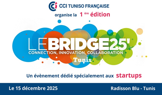 LEBRIDGE25 – Tunis est un événement dédié à la création de passerelles entre startups, entreprises et investisseurs. Il sera lancée lundi 15 décembre à Tunis, à l’initiative de la Chambre de Commerce et d’Industrie Tuniso-Française (CCITF).
