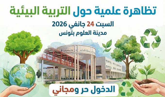À l’occasion de la Journée mondiale de l’éducation à l’environnement, la Cité des Sciences à Tunis organise, le samedi 24 janvier 2026, une journée scientifique majeure intitulée : « Éco-Éducation : Vers une Société Résiliente ».
