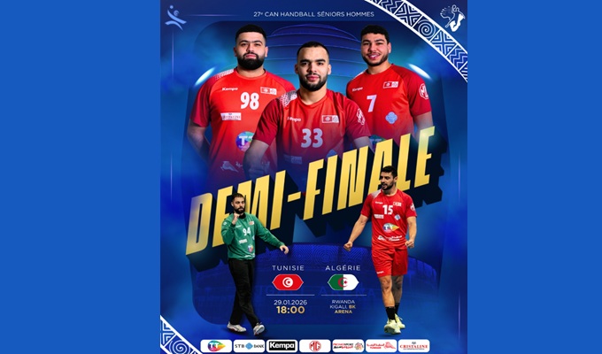 Le Match Tunisie vs Algérie se déroule jeudi 29 janvier 2026 pour le compte de la demi-finale de la CAN Handball 2026. Cette finale décisive de la Coupe d’Afrique des Nations de handball 2026 qui oppose la Tunisie et l’Algérie est prévue à 18h au stade BK Arena – Kgali à Rwanda.