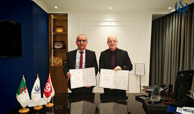Signée par le recteur de l’Université de Khenchela, Abdelouahad Chala, et le président de l’Université de Sfax, Ahmed Haj Kacem, la convention porte également sur l’échange de visites et de stages scientifiques au profit des étudiants et des enseignants, l’élaboration de projets de recherche conjoints ainsi que la co-direction de thèses de doctorat.