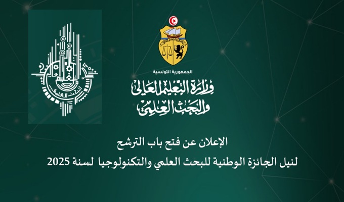 Le ministère de l’Enseignement supérieur et de la Recherche scientifique annonce l’ouverture des candidatures pour le Prix national de la recherche scientifique et technologique 2025, qui vise à encourager l’excellence scientifique, à promouvoir l’innovation technologique et à soutenir le rayonnement de la recherche scientifique en Tunisie au sein des établissements universitaires et de recherche.