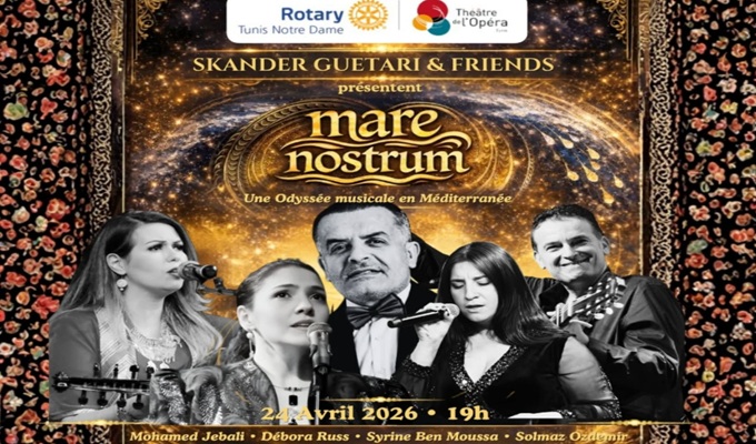 La troisième édition du festival de talents de la Méditerranée “Mare Nostrum Voice Festival” largue ses amarres pour la première fois en Tunisie, à l’occasion d’une soirée prévue le vendredi 24 avril 2026 à 19h00 au Théâtre de l’Opéra de Tunis, dans un élan conjuguant création musicale et acte de solidarité.